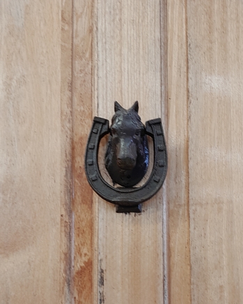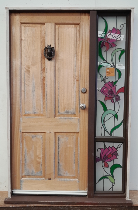 Brown aluminium frame with Solid timber door and faux leadlight