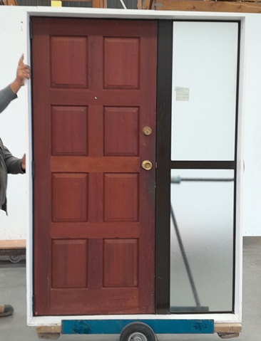 Jacob Demolition > Products > Brown Aluminium Frame With Timber Door And Sidelight H2040mm x W1425mm DR11910
