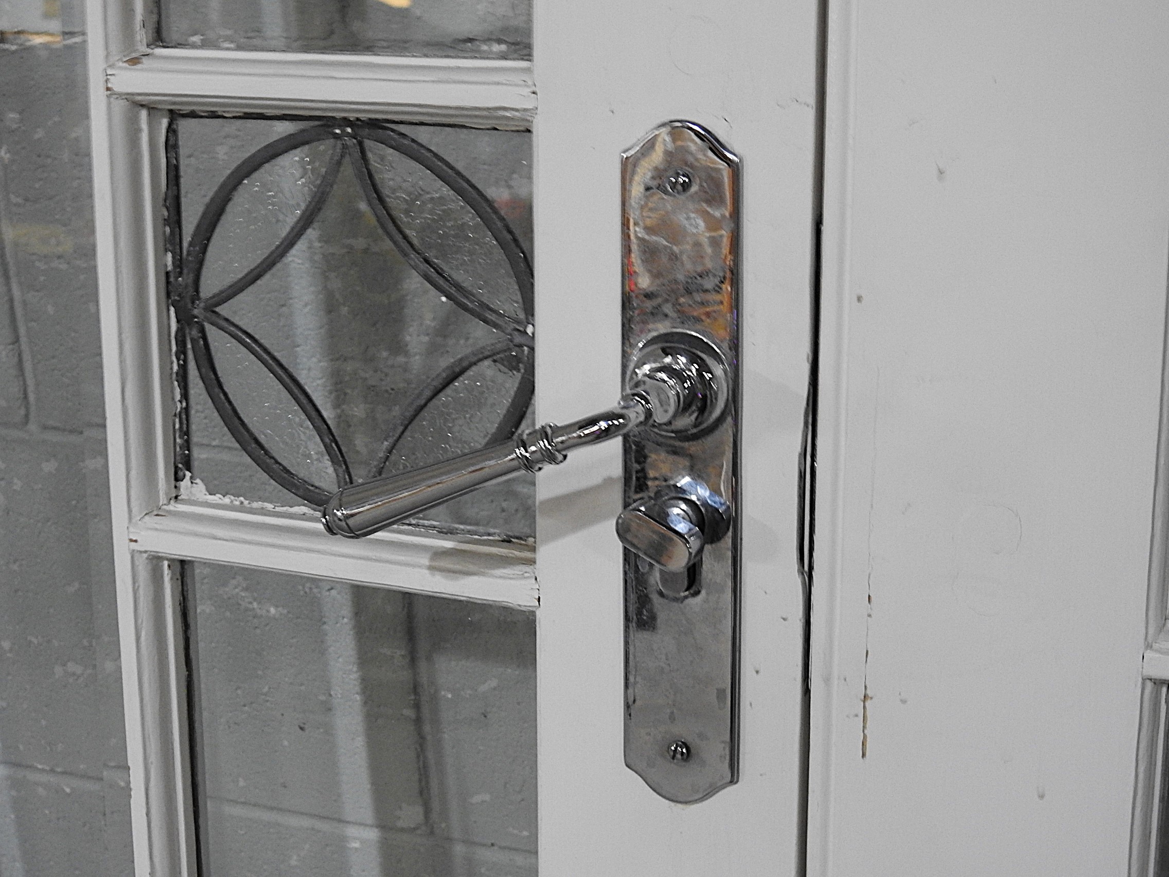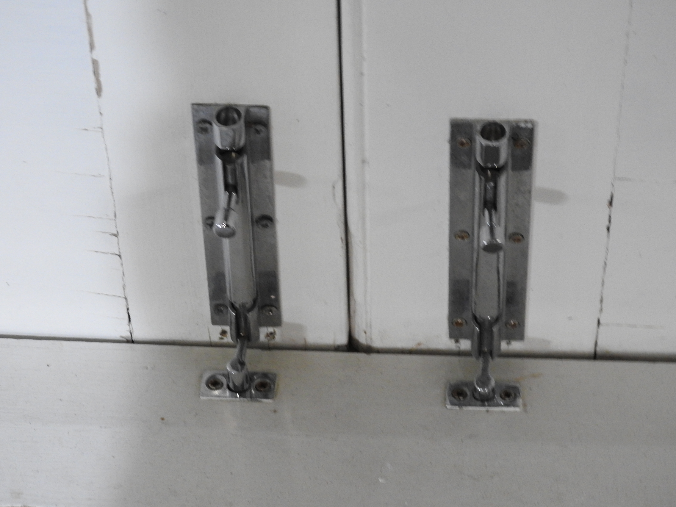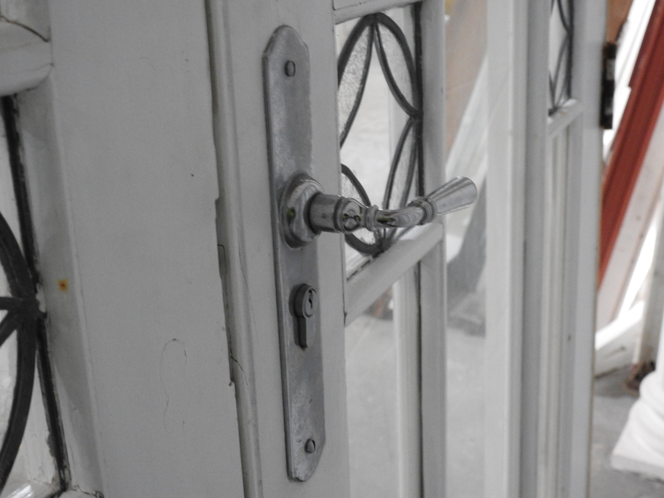 Notes: The door handle return-spring is weak. See the (quite heavy) handles are not at right-angles inside and out . . we will try to remedy that and get our locksmith to cut a key for the door at the same time – but only if we get the time, not a promise, we’ll do our best . . .