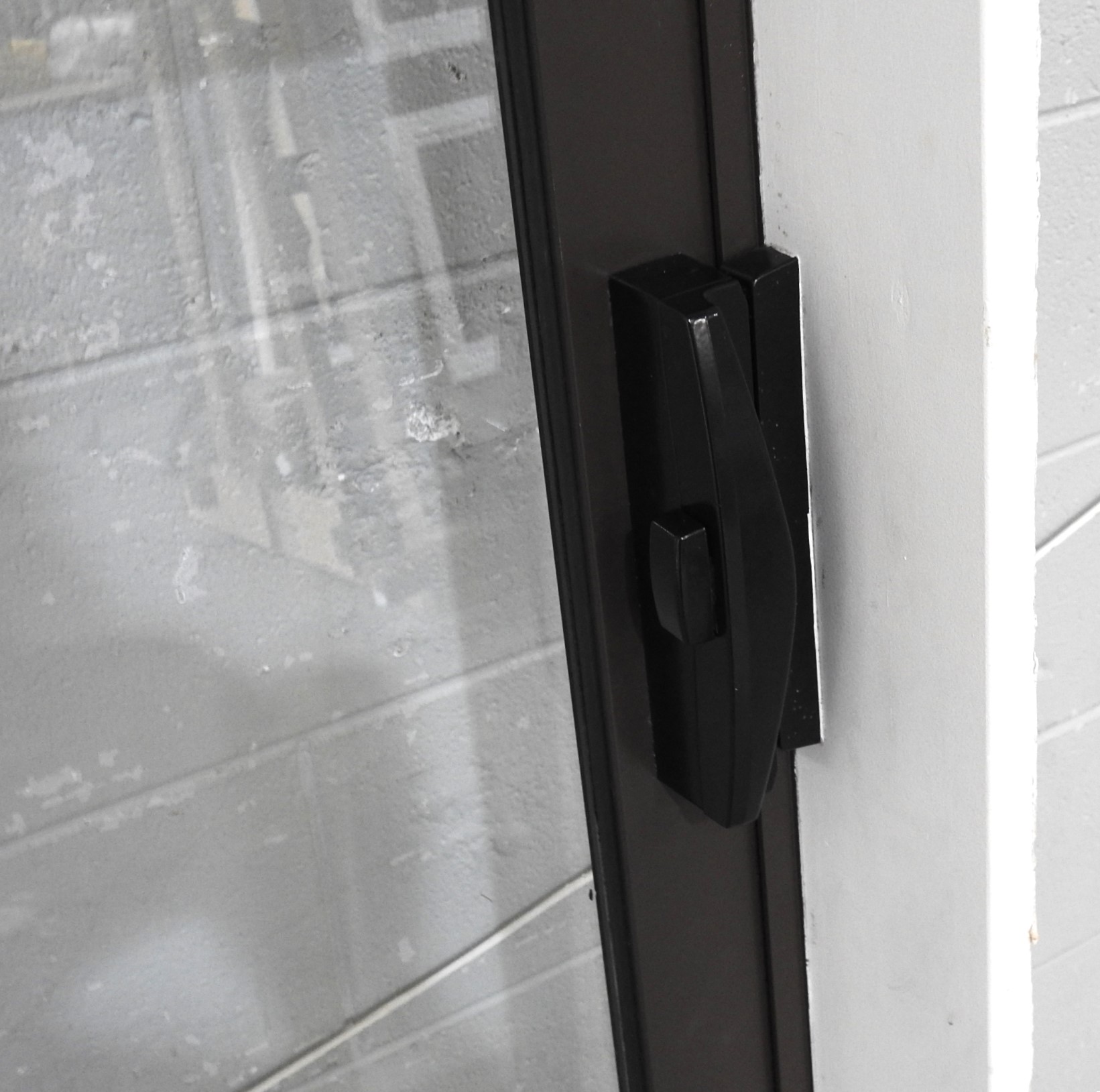 Has removable obscure film low down and at eye-level (for safety)