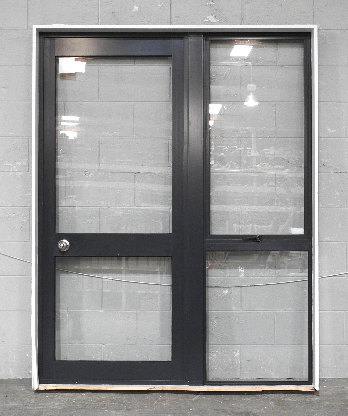 Denim Blue Aluminium Door With Awning Window Sidelight H2010mm x W1570mm NL15856