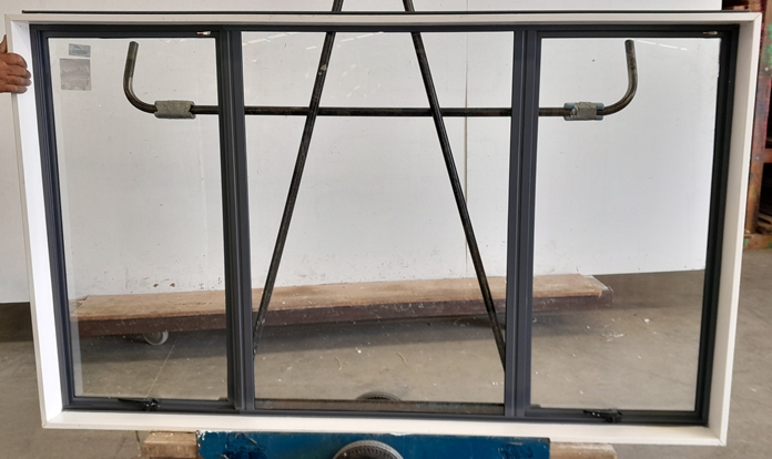 Denim blue aluminium twin awning window