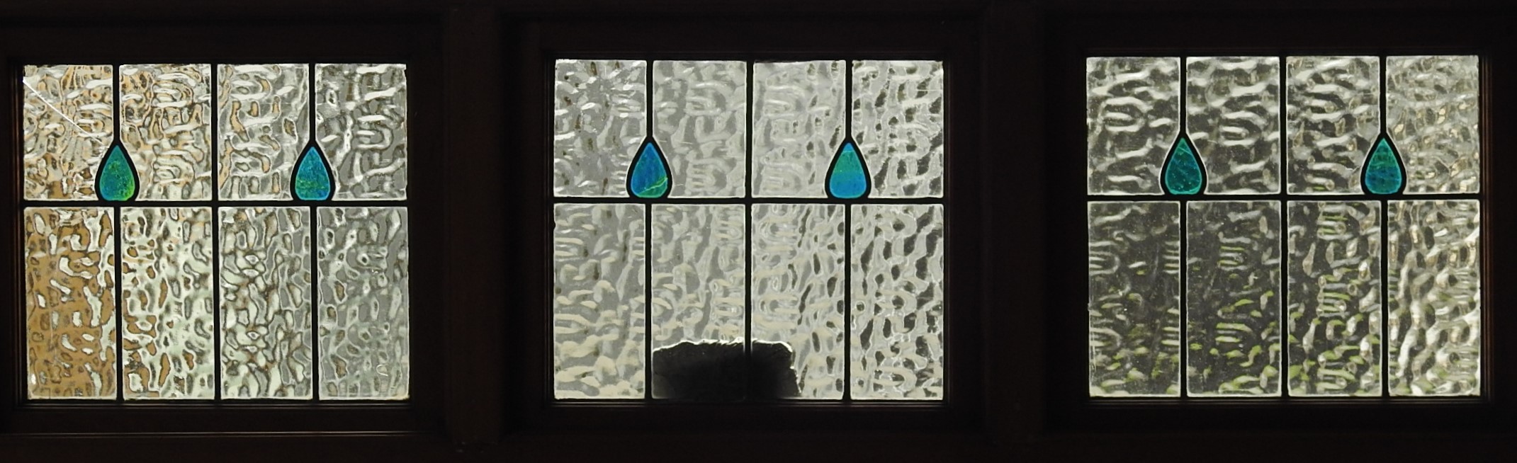 Each toplight sash has 10 glass pieces (30 total) – 1 crack, no bowing