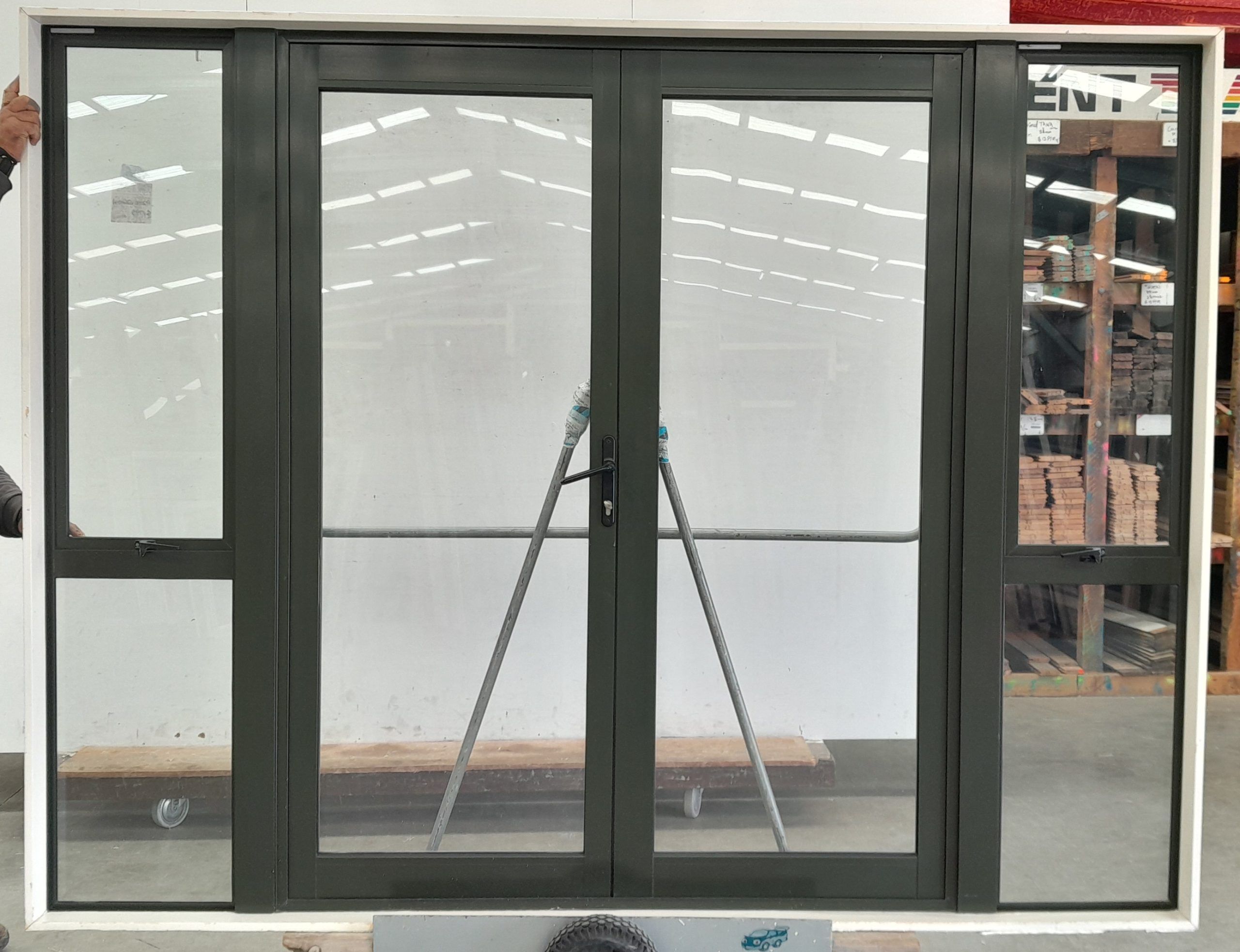 Karaka Green Aluminium French Doors H2000mm x W2600mm DR14521 - Jacob Demolition