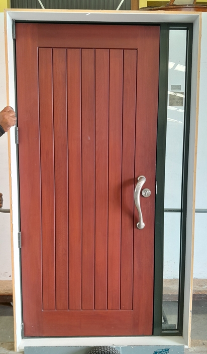 Karaka green double glazed aluminium frame and TG&V Cedar door