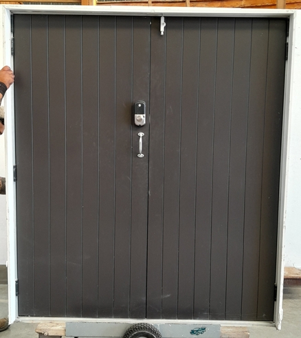Silver aluminium frame timber door