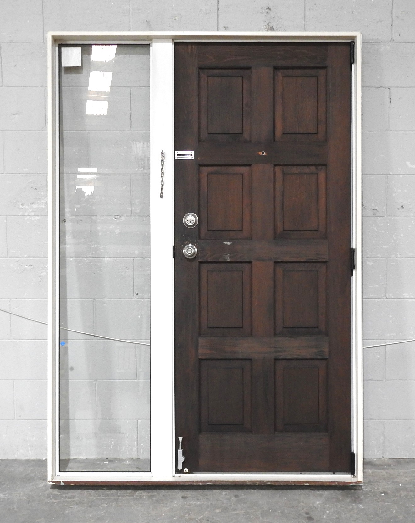White Aluminium Frame With Cedar 8-Panel Entry Door with Sidelight RHS