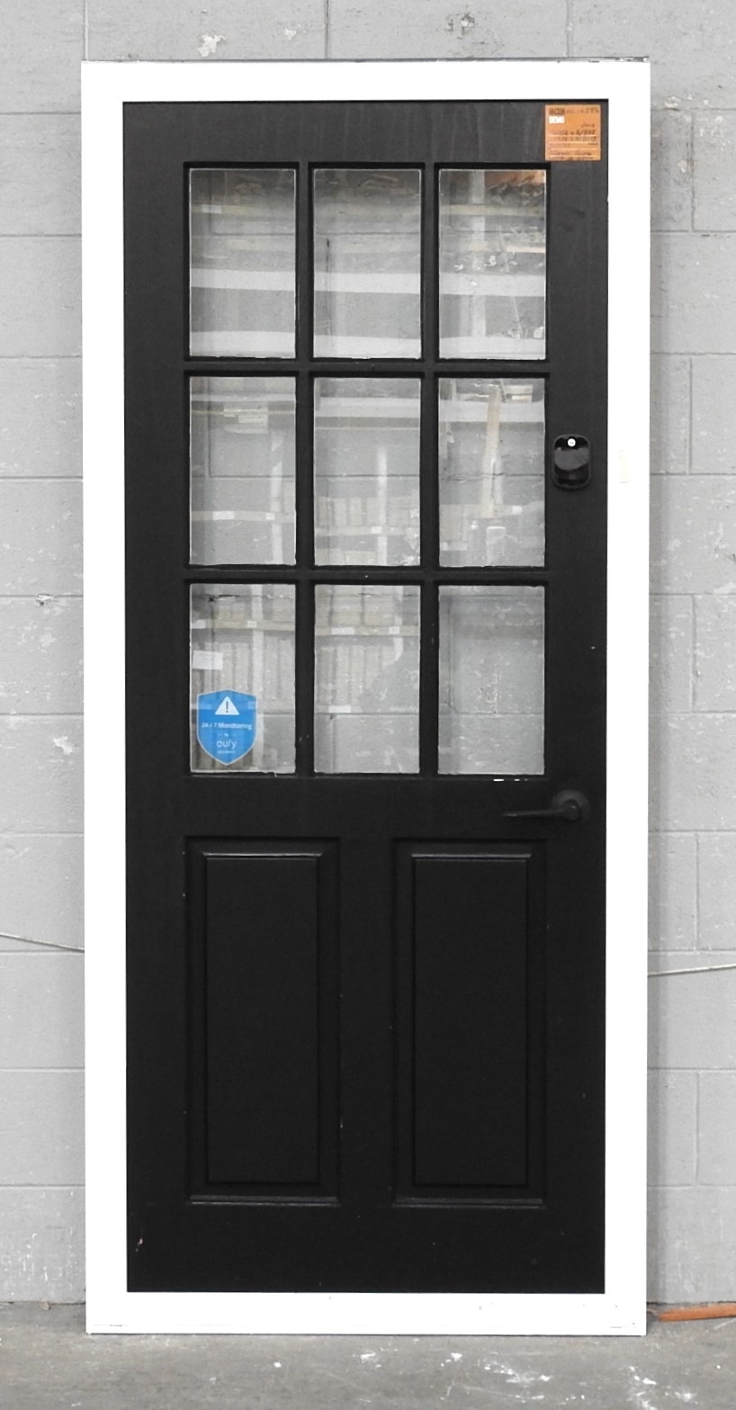 White Aluminium Frame With Villa Style 9-Light Wooden Door H1963mm x W810mm NL16356