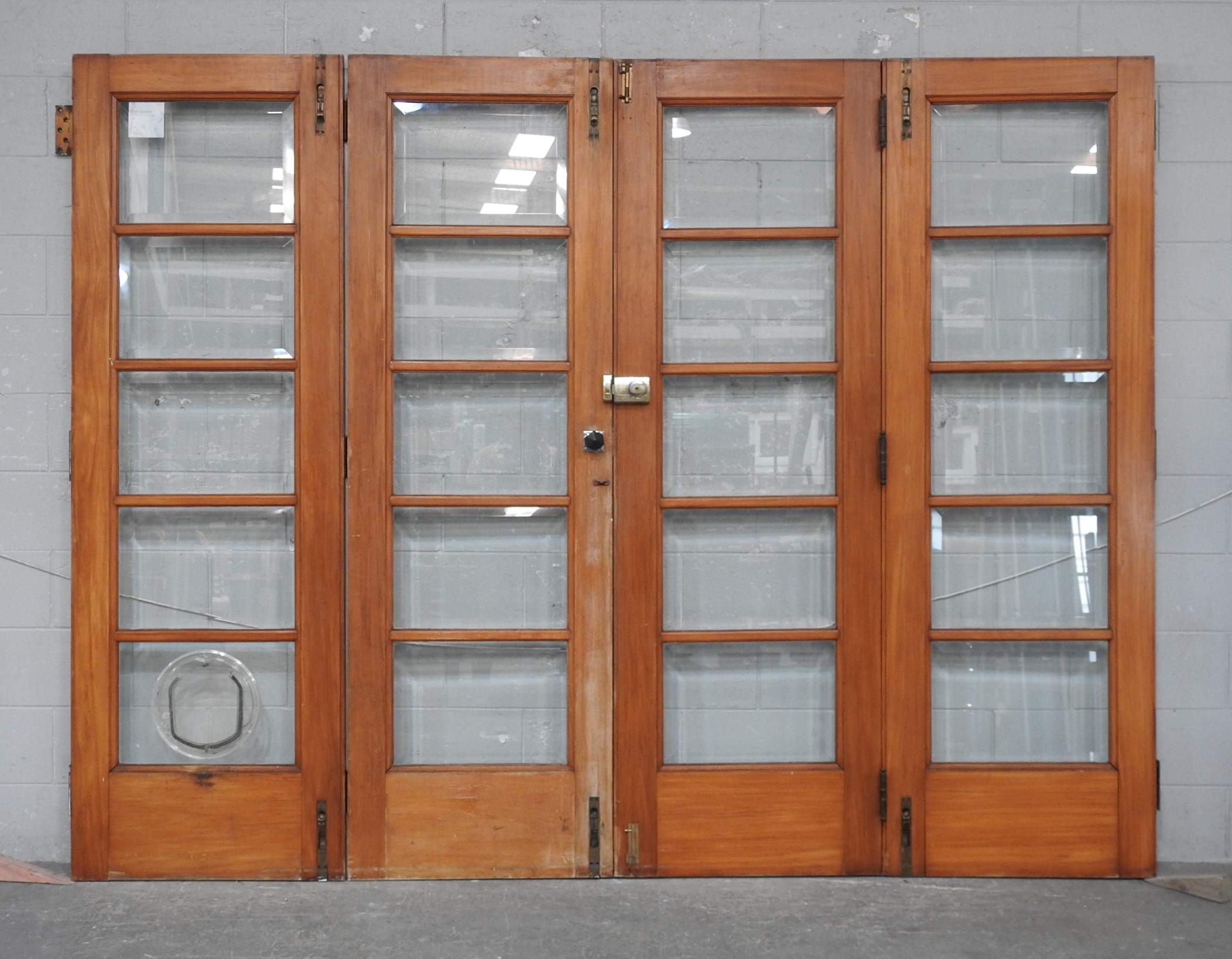 Wooden Cantilever* Bi-Folding 5-Light Doors – With Frame / Jamb / Sill (disassembled but complete)