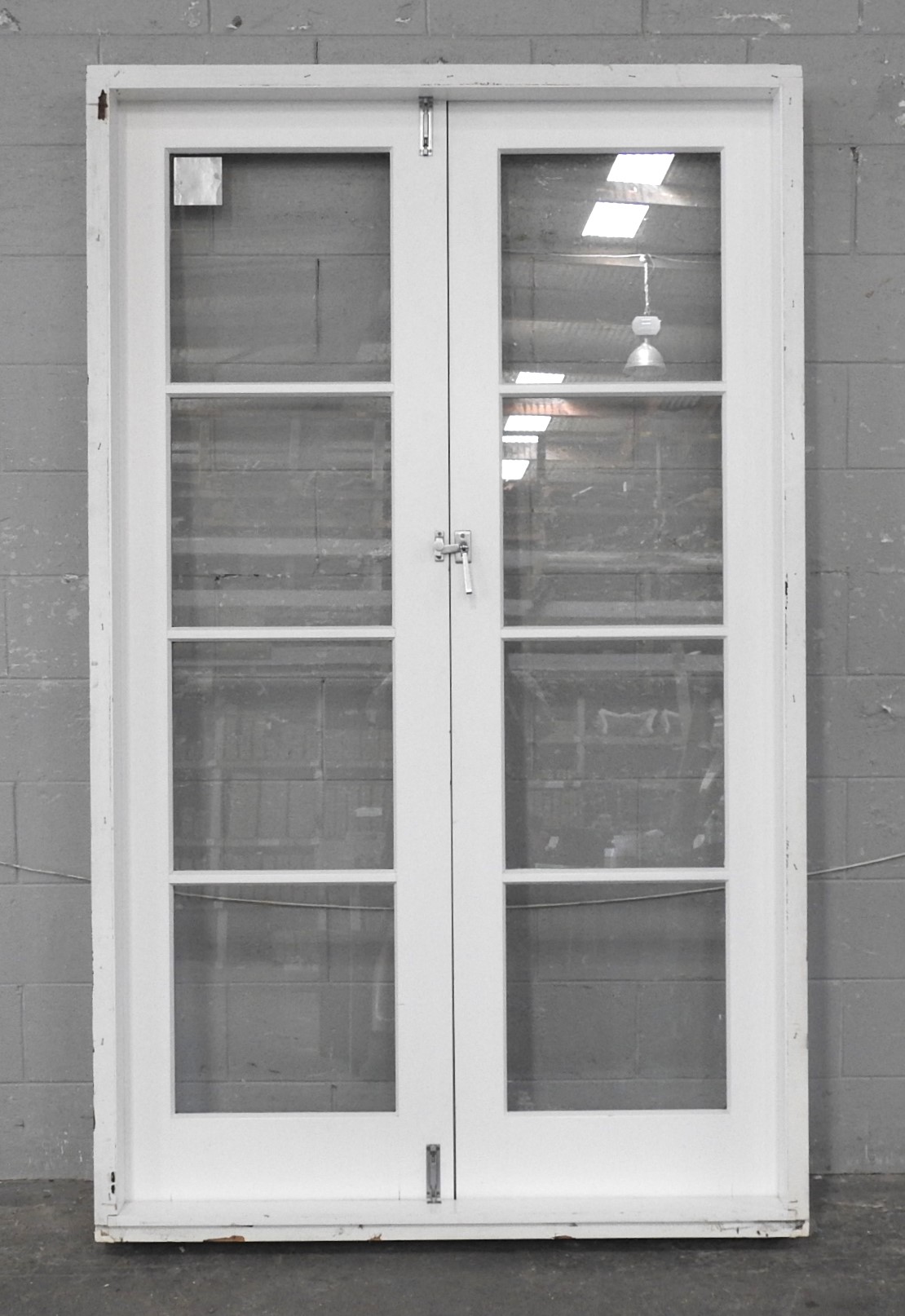 Wooden French 4-Light Doors Hung In Frame H2145mm x W1300mm NL16110 - Jacob Demolition